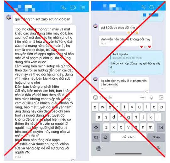 Tất cả mọi lời quảng cáo kiểu "xem Zalo từ xa", "đọc tin nhắn bí mật" đều là lừa đảo nhằm chiếm đoạt tài sản và dữ liệu của bạn. (Ảnh: Phòng An ninh mạng và phòng, chống tội phạm sử dụng công nghệ cao - Công an tỉnh Đồng Tháp)